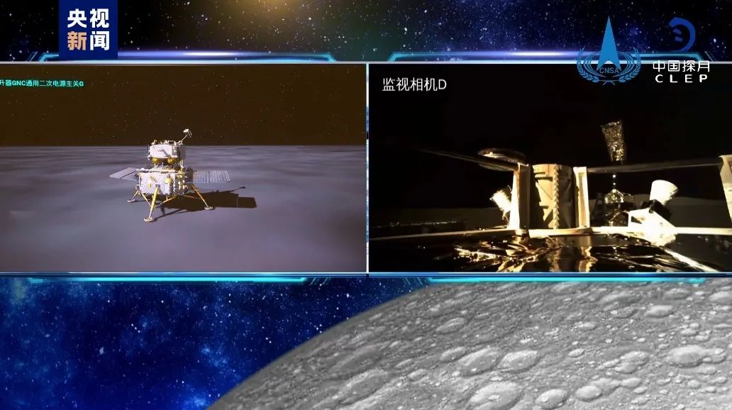 在嫦娥六號落月的最后階段,安裝在嫦娥六號底部γ關機敏感器開始實時精準測量嫦娥探測器與月球表面距離,當嫦娥六號落到距月面一定高度時,γ關機敏感器便會發出關機指令,關閉軌控和姿控發動機。