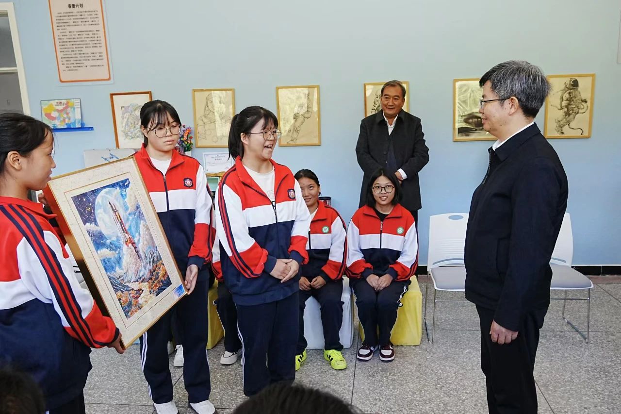 “春蕾計劃助學金給我的家庭緩解了壓力,今年夏天還有幸去了北京參加研學”,“在研學中了解了導彈和航天器的發展,航天人自強不息、迎難而上的精神讓我印象深刻,這給我高三的學習生活帶來力量”……在航天·筑夢女童成長空間站,春蕾女童分享了自己的心得和感悟,并將代表自己心意與祝福的航天主題繪畫作品贈送給航天科工。