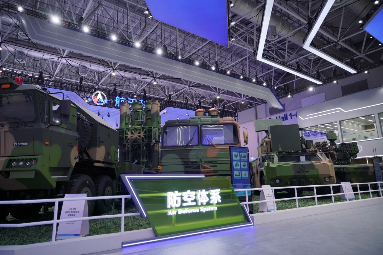在防空體系展區(qū),HQ-9BE遠(yuǎn)程防空武器系統(tǒng)、FD-2000A中遠(yuǎn)程防空武器系統(tǒng)、FK-3中遠(yuǎn)程防空武器系統(tǒng)、HQ-17AE近程防空武器系統(tǒng)等“明星裝備”煥新亮相。