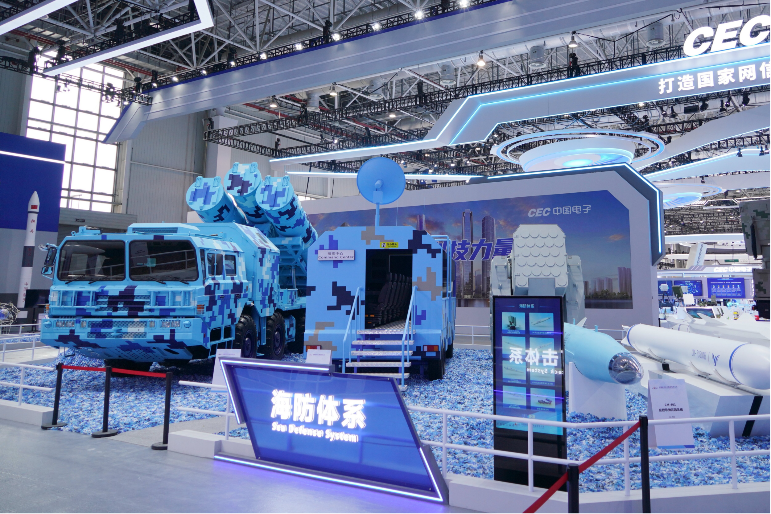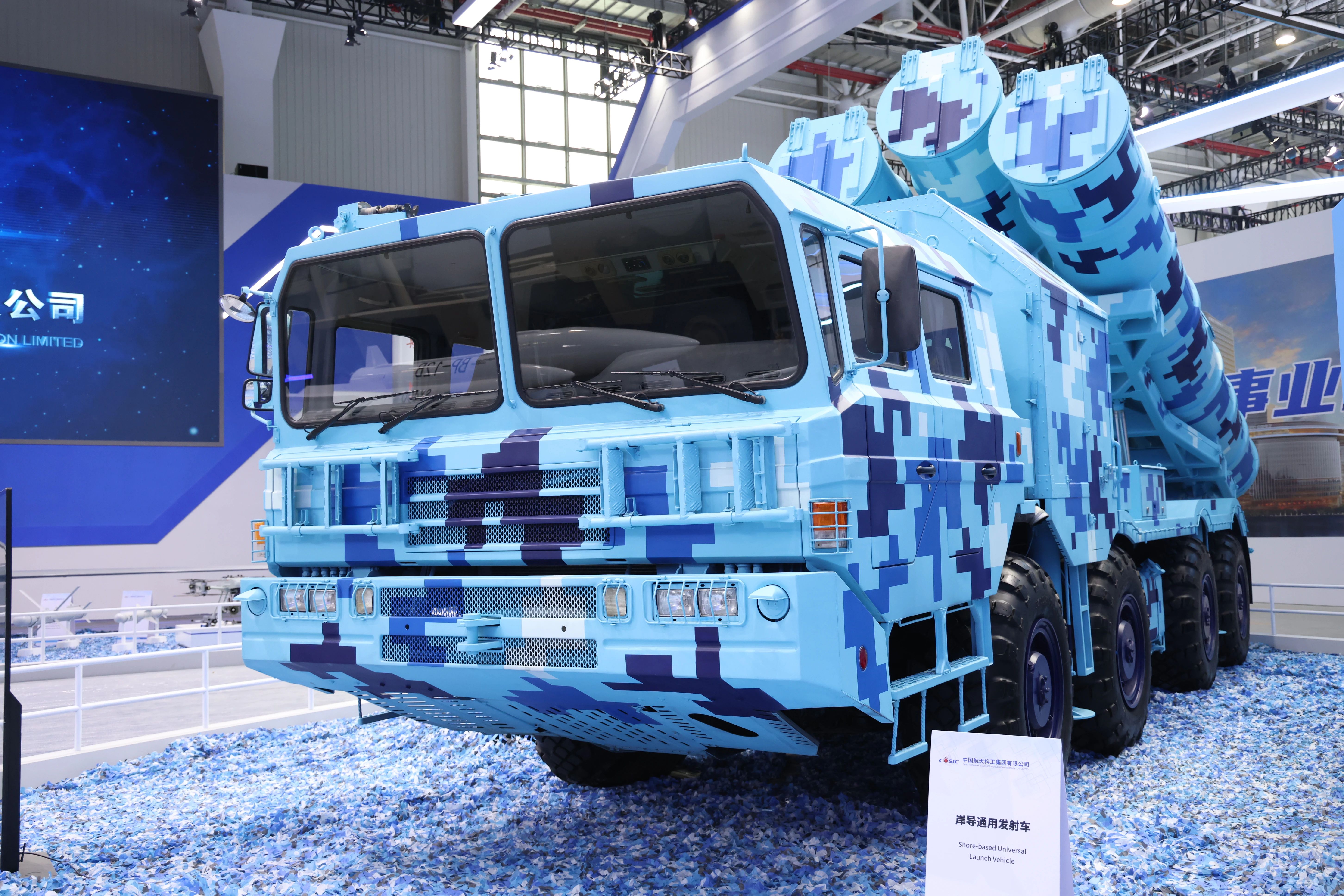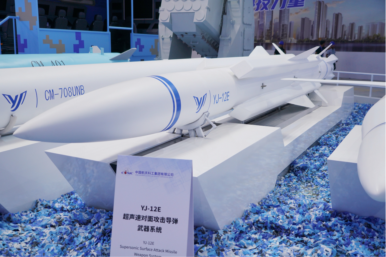 在第十五屆中國國際航空航天博覽會上,中國航天科工集團(tuán)有限公司展出了一體化海防武器系統(tǒng),YJ-12E、YJ-18E、CM-708UNB、CM-401等多款“明星裝備”組合亮相。