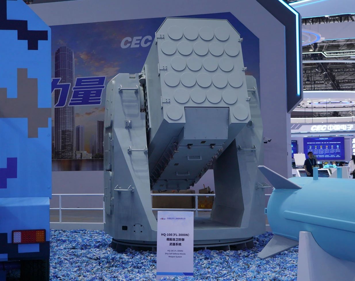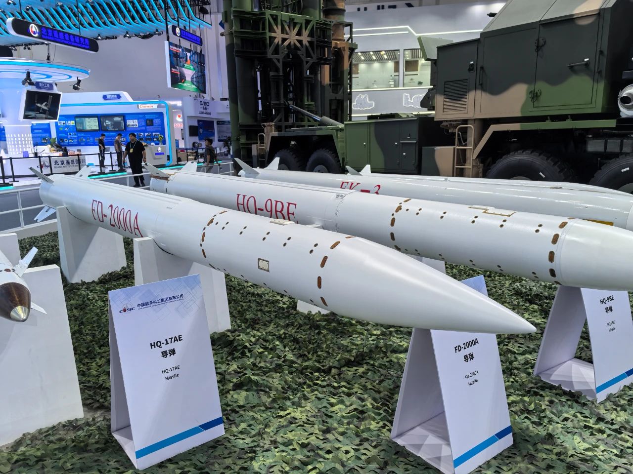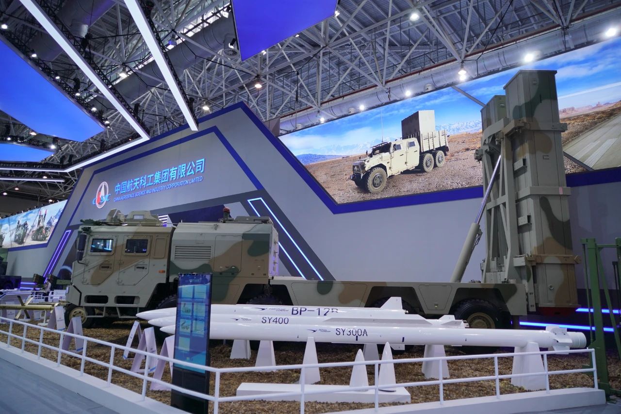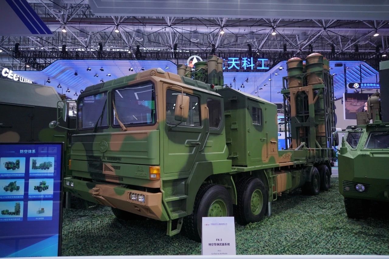 在中國航天科工集團(tuán)有限公司防空體系展區(qū),HQ-9BE遠(yuǎn)程防空武器系統(tǒng)、FD-2000A中遠(yuǎn)程防空武器系統(tǒng)、FK-3中遠(yuǎn)程防空武器系統(tǒng)、HQ-17AE近程防空武器系統(tǒng)等“明星裝備”煥新亮相。
