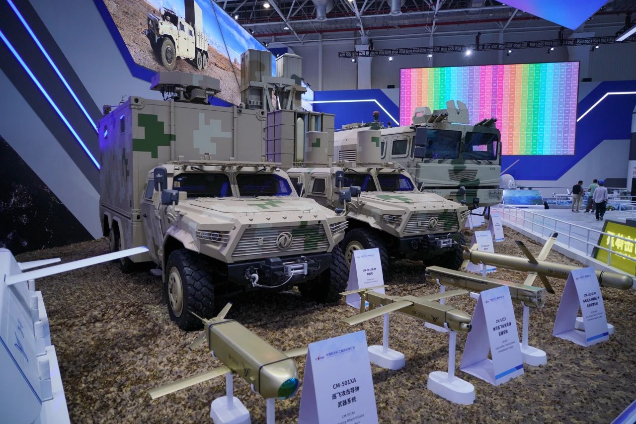 其中,CM-98隱身多用途導(dǎo)彈、CM-502X單兵巡飛攻擊導(dǎo)彈均為首次亮相。CM-98是根據(jù)國際市場需求研制的一型隱身多用途導(dǎo)彈武器系統(tǒng),可在防區(qū)外遂行打擊對方高價(jià)值目標(biāo),具有全天時(shí)、全天候使用,高隱身穿透、抗干擾突防、寬飛行包絡(luò)、高效能毀傷、易于維護(hù)保障等特點(diǎn)。CM-502X能夠高效打擊重型主戰(zhàn)坦克,具有靈巧打擊、多模式簡易發(fā)射等特點(diǎn)。