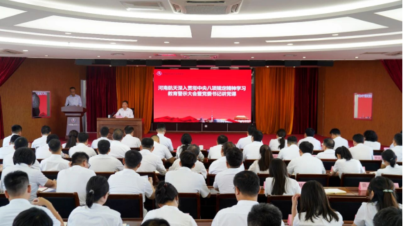 為深入學習領會習近平總書記關于加強黨的作風建設的重要論述,扎實推進深入貫徹中央八項規定精神學習教育,7月3日上午,河南航天召開深入貫徹中央八項規定精神學習教育警示教育大會暨黨委書記專題黨課。會上,黨委書記、董事長姚巍林以《持之以恒深入貫徹中央八項規定精神 為河南航天高質量發展提供堅強作風保障》為題作專題黨課授課。黨委副書記、總經理梁東宇通報全國4起違規吃喝問題,集團公司及河南航天違反中央八項規定精神典型案例,帶領大家共同深刻反思在貫徹落實中央八項規定精神方面存在的問題和差距。