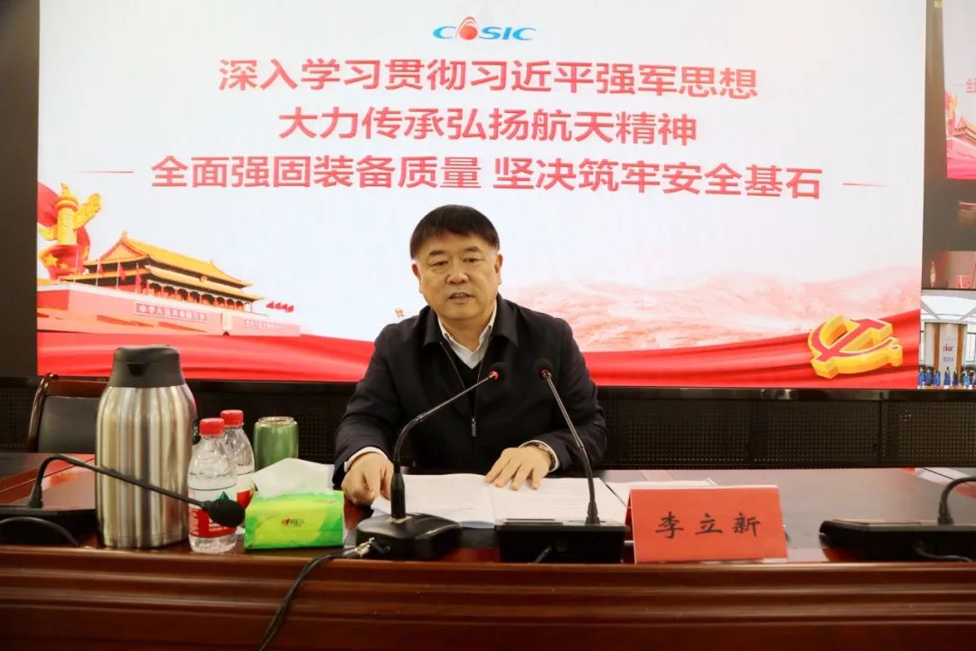 李立新圍繞“深入學(xué)習(xí)貫徹習(xí)近平強軍思想 大力傳承弘揚航天精神 全面強固裝備質(zhì)量 堅決筑牢安全基石”主題,帶領(lǐng)大家深入學(xué)習(xí)習(xí)近平強軍思想的豐富內(nèi)涵,習(xí)近平總書記關(guān)于發(fā)展航天事業(yè)、加強裝備質(zhì)量、做好安全生產(chǎn)等方面的重要論述和重要指示批示精神。他飽含深情地回顧了中國航天固體動力事業(yè)的發(fā)展歷程,系統(tǒng)闡述了航天精神的特質(zhì)內(nèi)涵,緊密結(jié)合六院形勢任務(wù)和具體實例,對學(xué)習(xí)貫徹習(xí)近平強軍思想、大力傳承弘揚航天精神,進一步強固裝備質(zhì)量、加強安全生產(chǎn)等工作提出了具體要求。