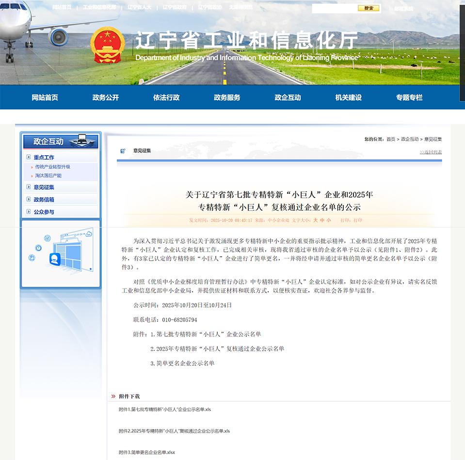 繼2022年通過工信部第四批國家“專精特新”小巨人企業認定,10月20日,遼寧省工業和信息化廳發布《關于遼寧省第七批專精特新“小巨人”企業和2025年專精特新“小巨人”復核通過企業名單的公示》,航天二院航天長峰所屬航天朝陽電源順利通過該認定復核,持續保有國家專精特新“小巨人”企業榮譽稱號。