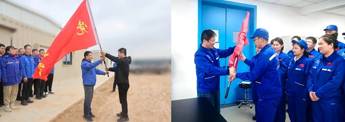 授旗儀式上,所領(lǐng)導(dǎo)為黨員突擊隊(duì)代表、青年突擊隊(duì)代表授旗。突擊隊(duì)隊(duì)長介紹隊(duì)名、人員組成和任務(wù)目標(biāo)。